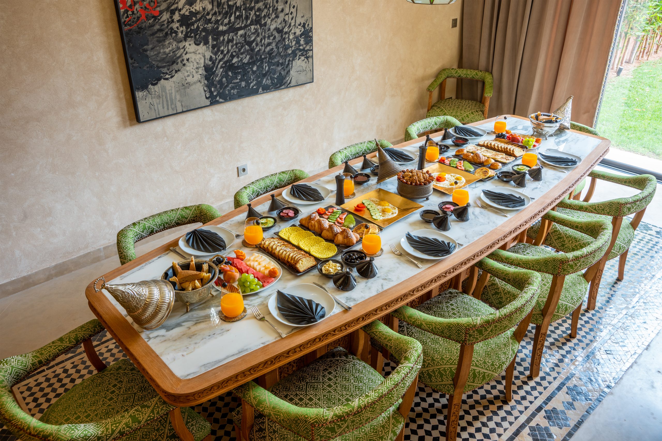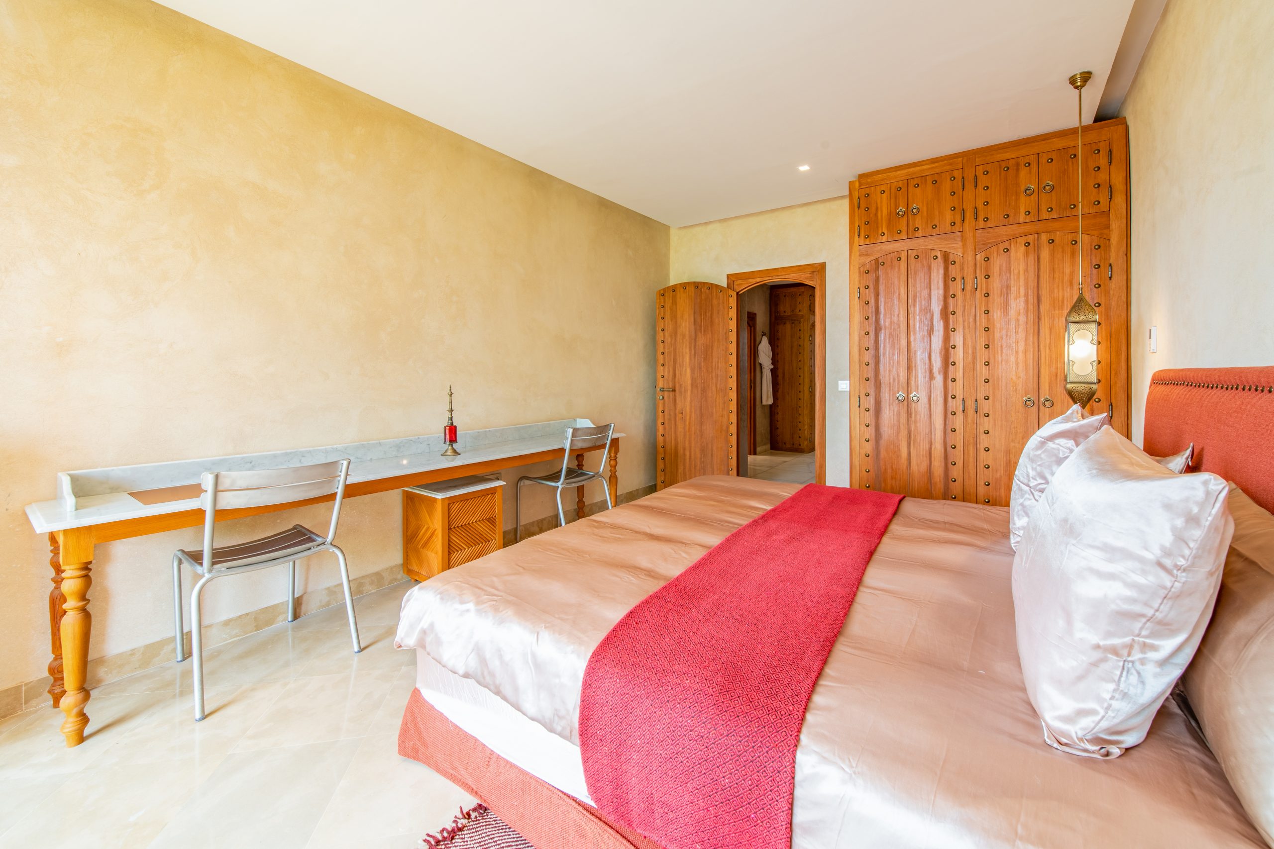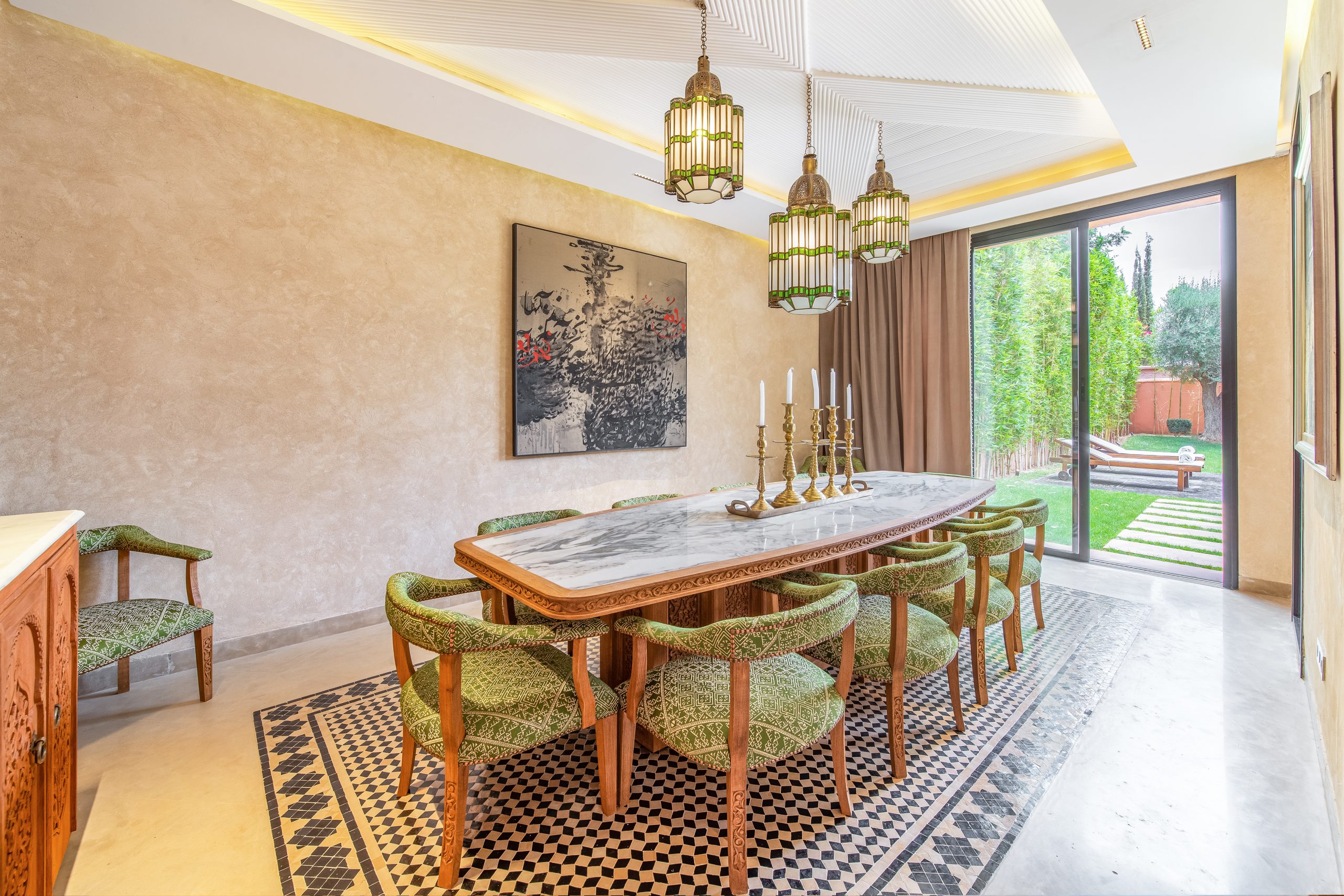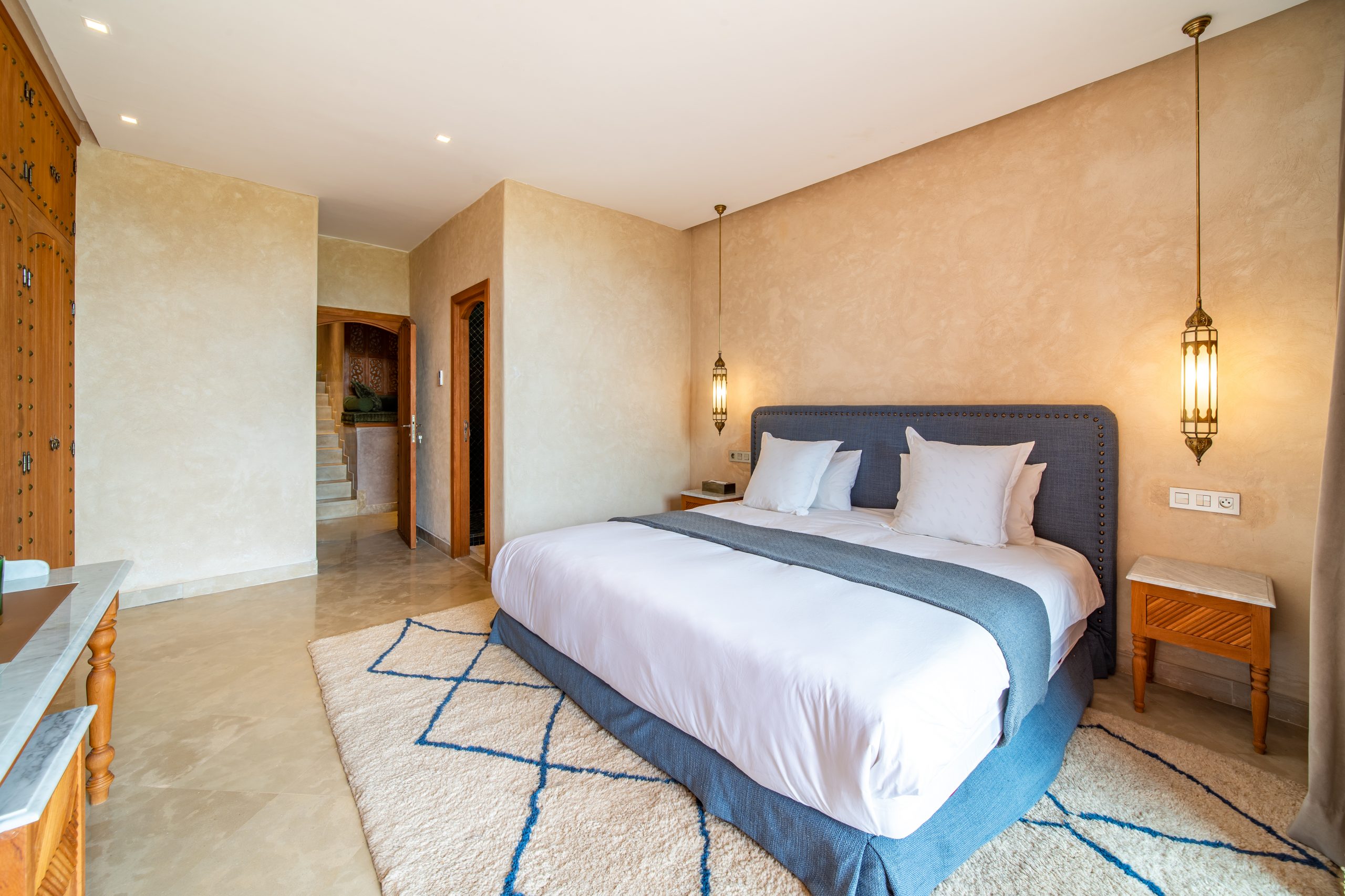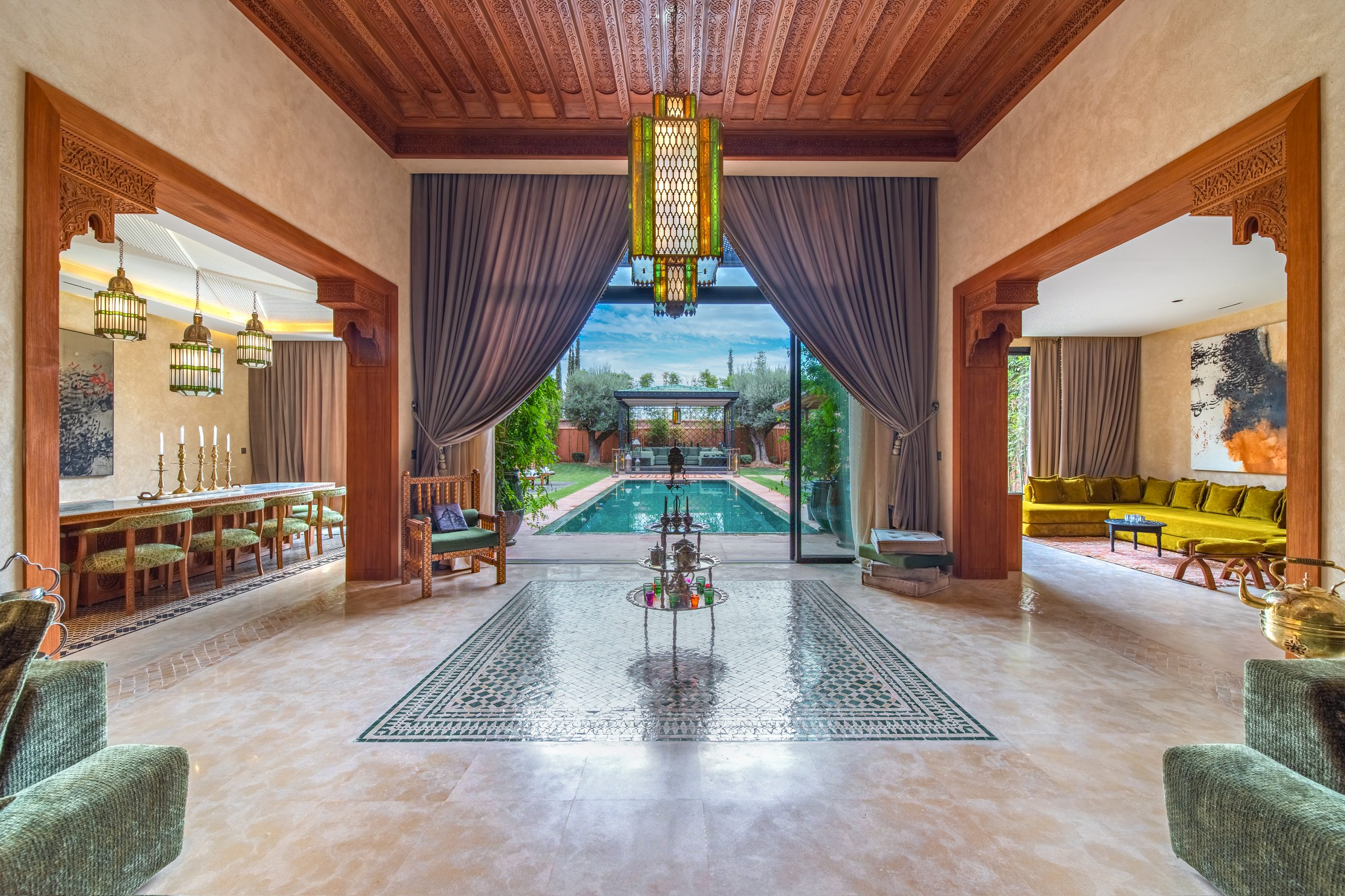 Pensé comme un logement hôtelier digne des plus grands palaces de Marrakech, ce riad raconte, par son architecture intérieure, le mode de vie ancestral marocain, sublimé par l’expertise de grands artisans et les œuvres de peintres marocains de renom.