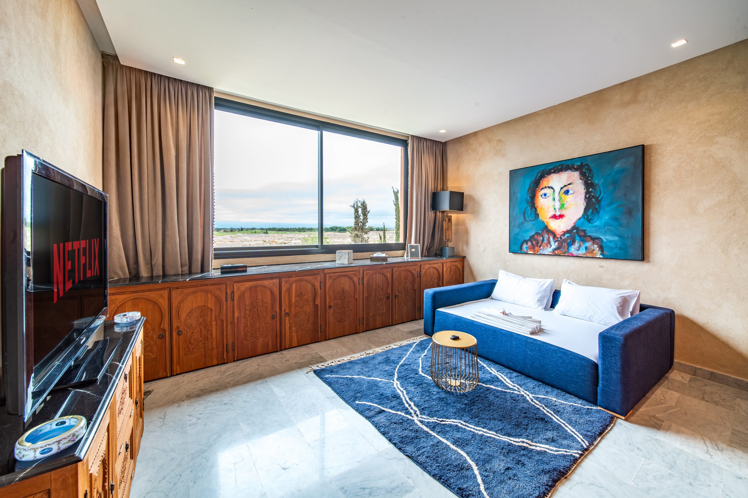 « Le Douze » est composé de 5 suites, d’une piscine et d’un jardin avec une vue imprenable sur le golf et les montagnes de l’Atlas. Un cadre idéal pour les familles et les couples d’amis en quête de luxe et de tranquillité.